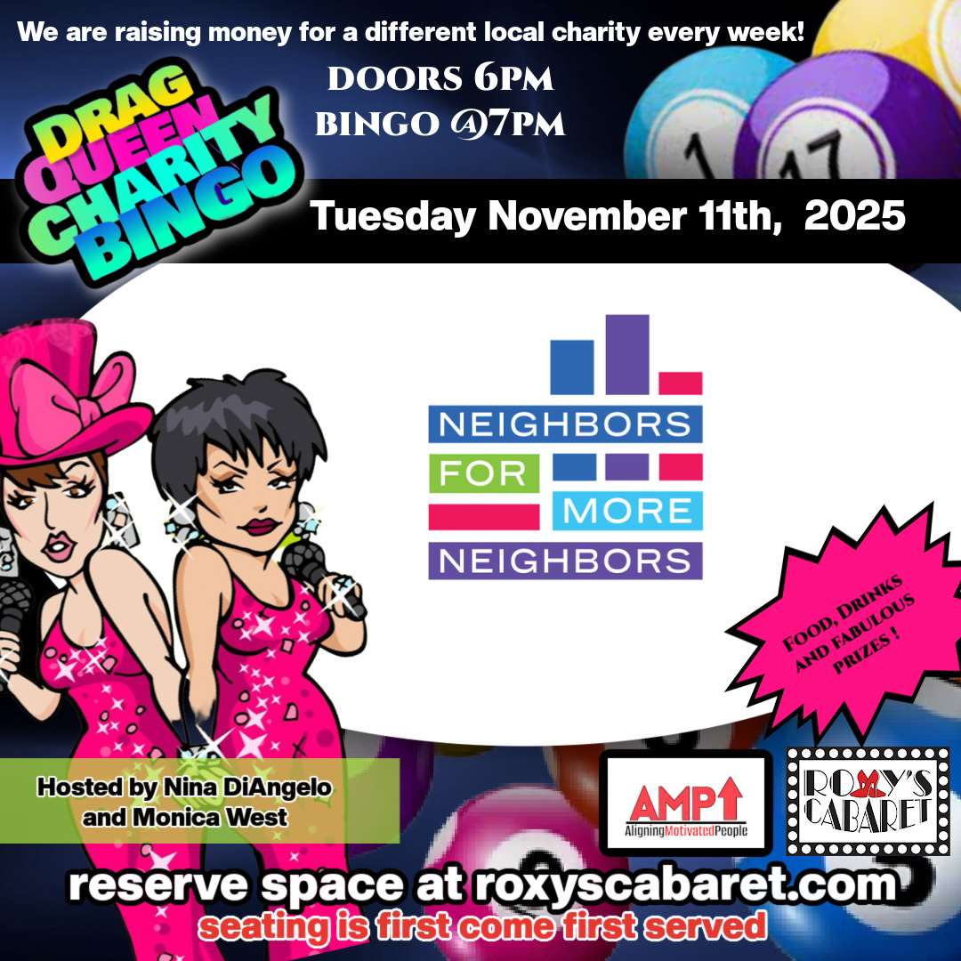 So grab a few friends and come have fun with Neighbors for More Neighbors & the fabulous hosts at Roxy's Cabaret!