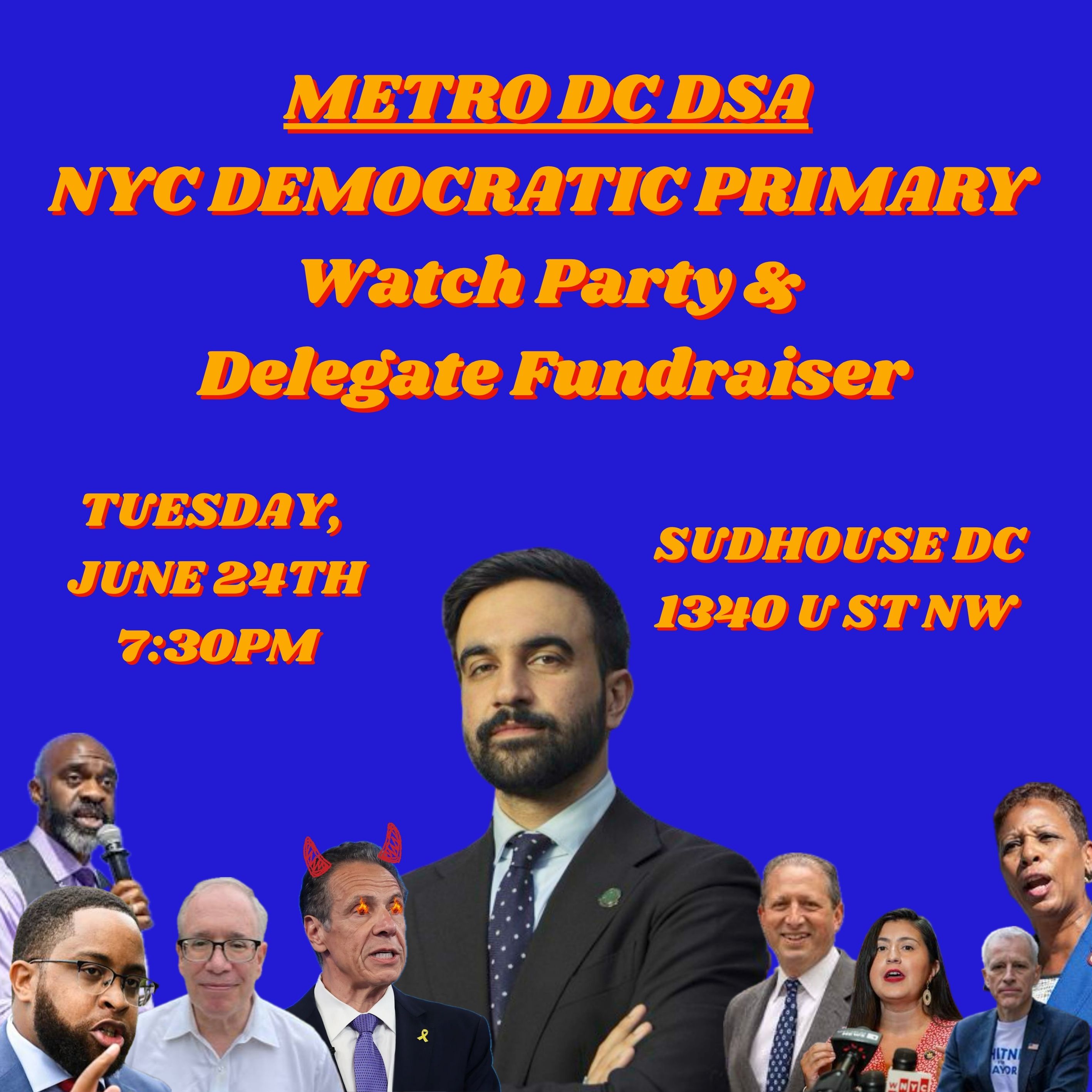 Join Metro DC DSA for a watch party as we follow the results of the New York City Democratic Primary—especially the mayoral race, where the stakes are high and the politics are sharp.