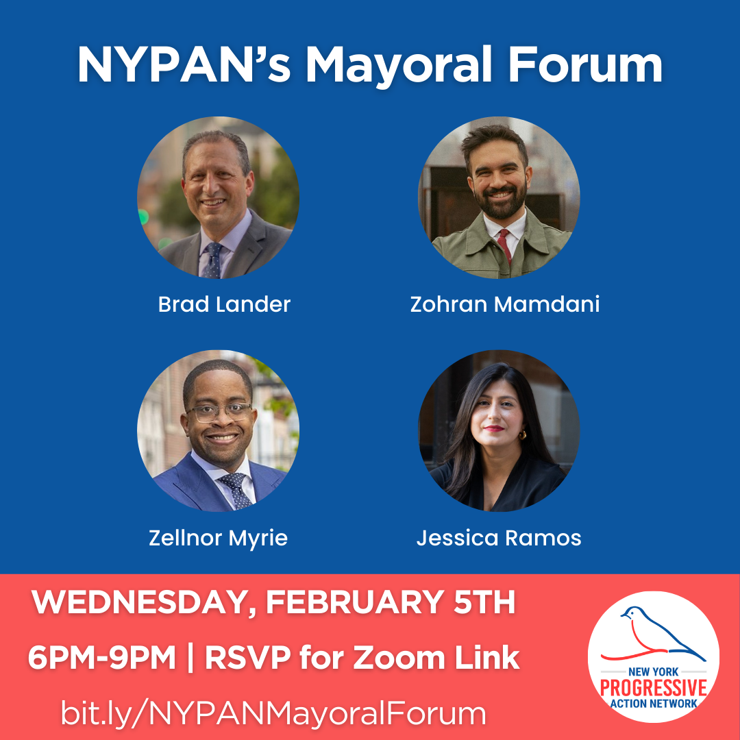 Join NYPAN for our NYC Mayoral forum where we will ask Mayoral candidates their stances on progressive policies and hear about how they will fight for our city.