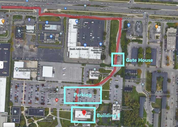 Please give yourself extra time to arrive, as many map and GPS functions cannot find the access road into the ODNR complex, and you may find yourself on a side street and need to try again.