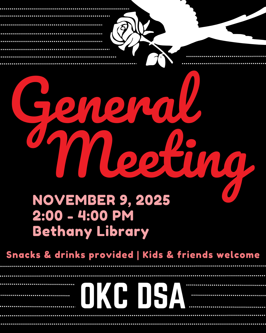Join Oklahoma City DSA for our final General Meeting of 2025!