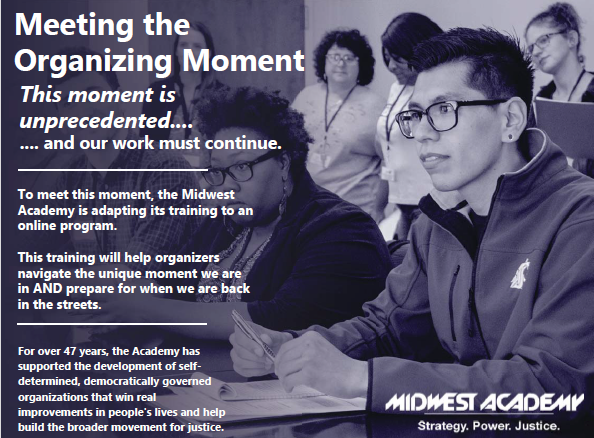 - Optional Coffee Hour: June 16 & 18, 9:30 Central Time -- based on feedback from our first round of online trainings, we are offering extra chances to connect with your fellow organizers and trainers and do deeper dives into some topics. We urge you to consider joining one of our coffee hours for an informal conversation.