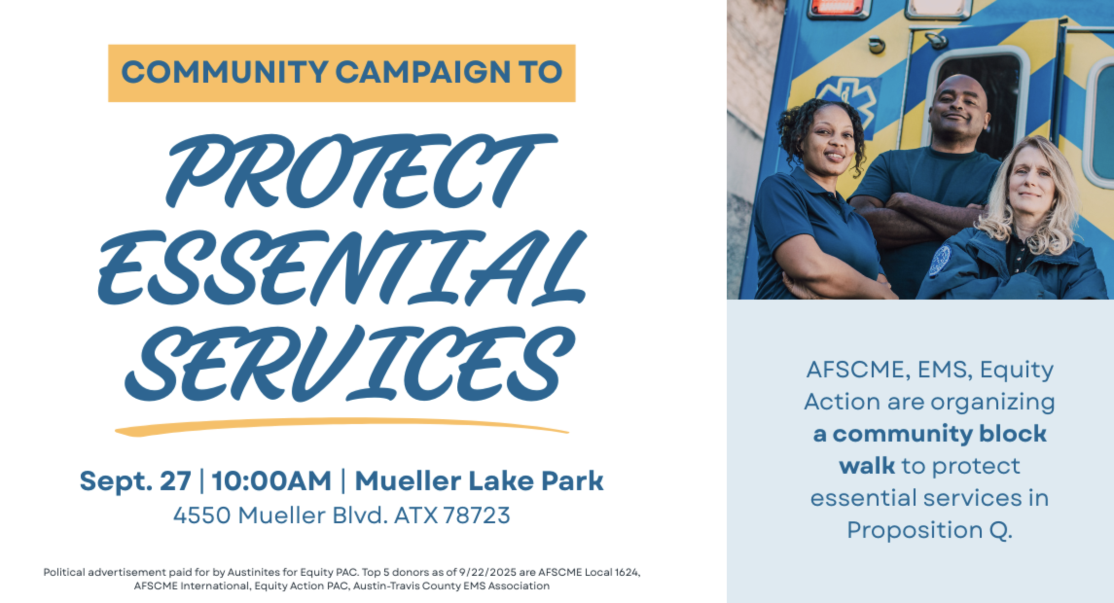 We’ll be walking together in support of Austin’s City services and the workers who keep them running — from our parks and libraries to our health, water, and energy services.