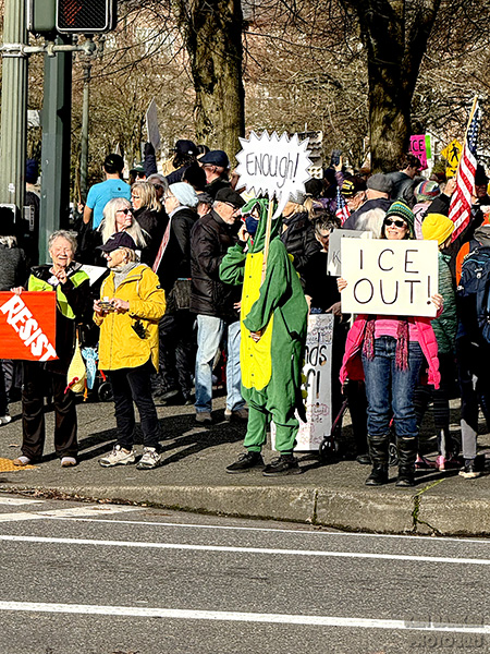 Flat sidewalks, bathrooms at nearby Lloyd Center, and parking at Lloyd lot adjacent to the demonstration
