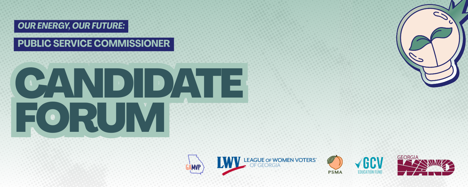 Join Georgia Muslim Voter Project (GAMVP), Georgia Conservation Voters Education Fund (GCVEF), League of Women Voters Georgia (LWV GA), Georgia WAND (GA WAND), and Peach State Muslim Action for an upcoming nonpartisan event: Our Energy, Our Future: Public Service Commissioner Candidate Forum on October 12th at 2pm!