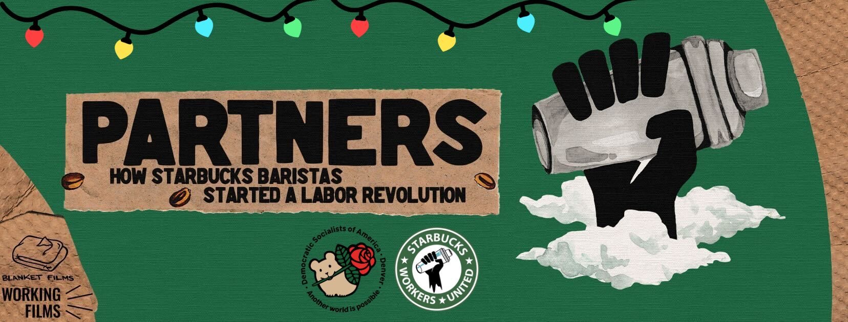 Come watch the Denver premier of the new short documentary Partners about Starbucks workers' historic union campaign. Then stick around for a panel discussion with union baristas to learn about the ongoing strike and how you can help.