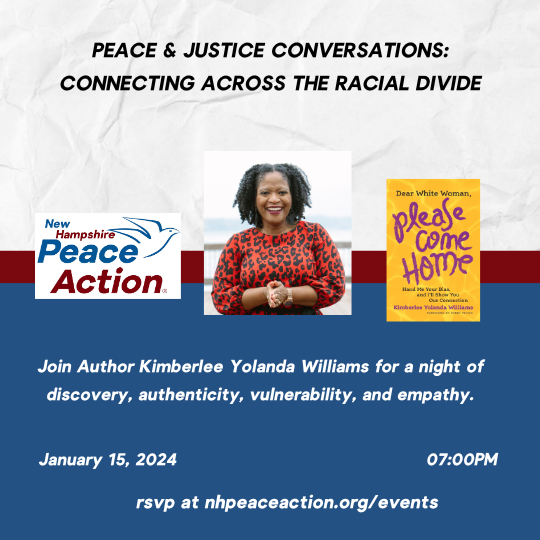 About NHPA’s bi-weekly Zoom Peace & Justice Conversation Series: 2020’s upheavals brought us to a new moment of reckoning and possibility. How do we want to live in the world? What do we value? How can we make the changes we’ve been yearning for? NH Peace Action has been engaged in working for change for decades. We’d like to bring you into these conversations about issues and options for the future. There is no charge to attend, but your contributions in any amount are greatly appreciated.