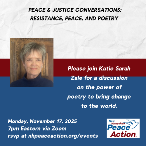 If you do not receive the Zoom link after RSVP'ing, please email doreen@nhpeaceaction.org.