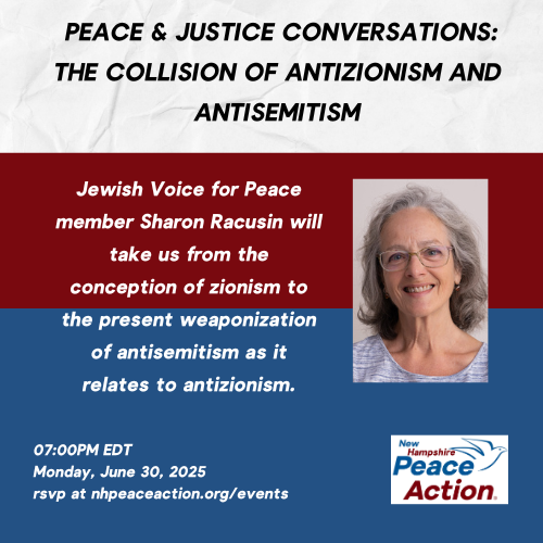 About NHPA’s bi-weekly Zoom Peace & Justice Conversation Series: 2020’s upheavals brought us to a new moment of reckoning and possibility. How do we want to live in the world? What do we value? How can we make the changes we’ve been yearning for? NH Peace Action has been engaged in working for change for decades. We’d like to bring you into these conversations about issues and options for the future. There is no charge to attend, but your contributions in any amount are greatly appreciated.