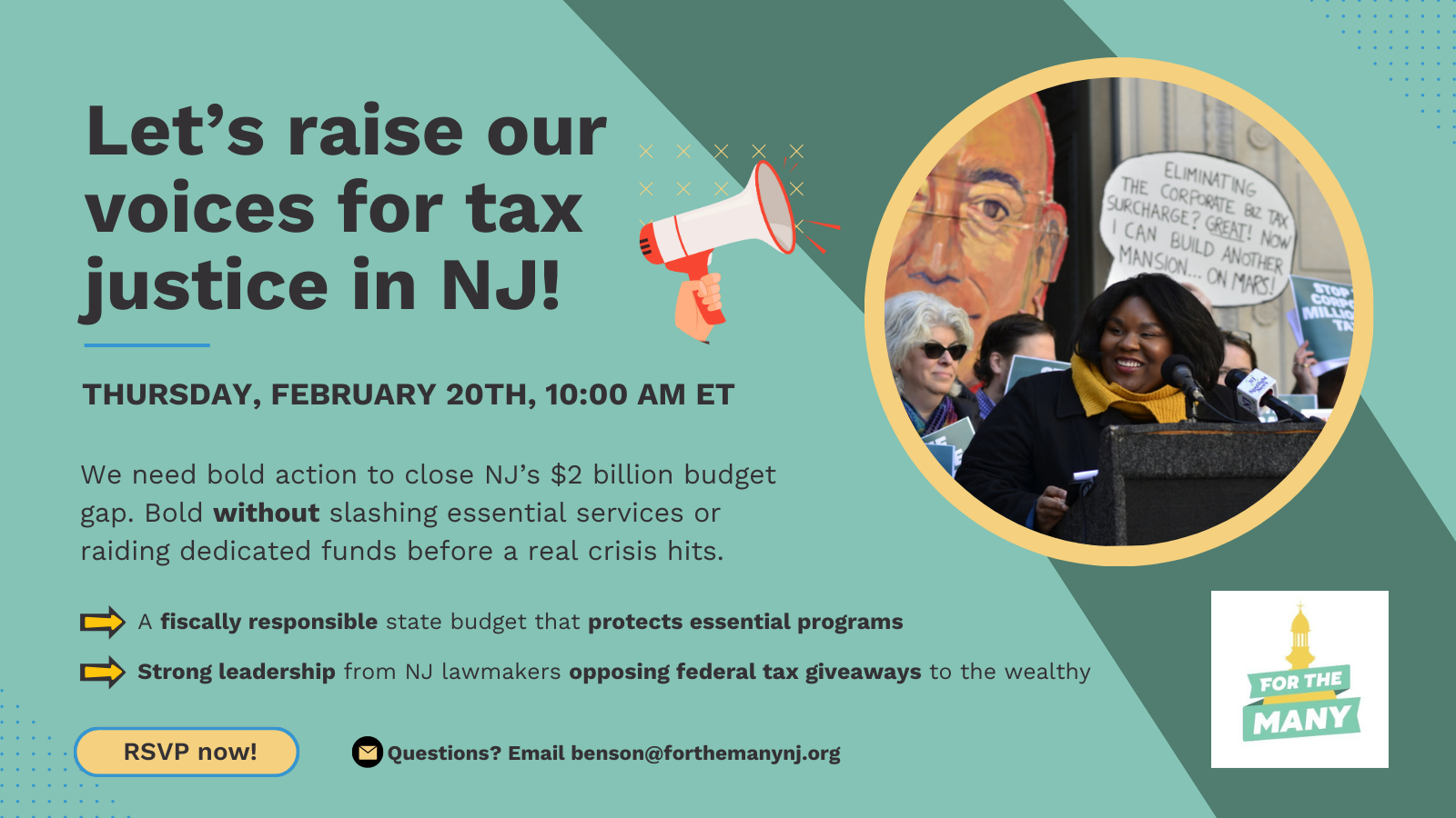 New Jersey is facing a $3 billion budget shortfall—and we need bold action to close the gap without slashing essential services, raiding dedicated funds, or raiding the rainy day fund before a real crisis hits. At the same time, federal lawmakers are pushing tax cuts for millionaires, billionaires, and wealthy corporations at the direct expense of Medicaid, SNAP, TANF, and other programs working families rely on.