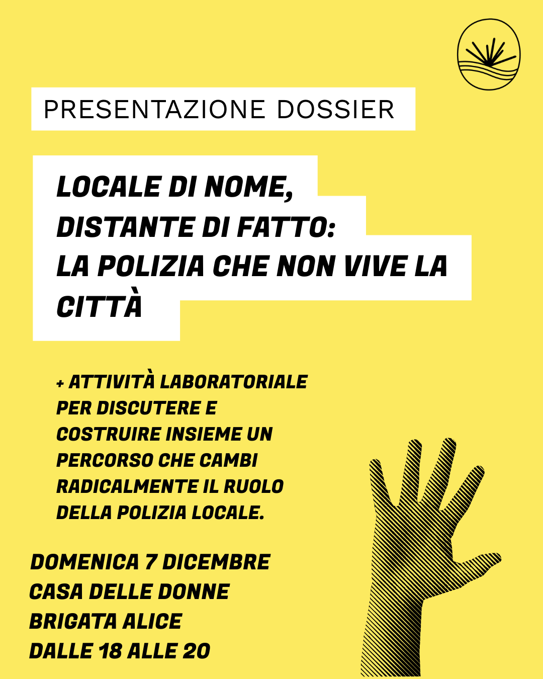 Quello di domenica 7 dicembre sarà il primo appuntamento della nuova campagna volta a creare una proposta partecipata per dire basta agli agenti atteggiati da sceriffi di quartiere e ripensare alla polizia locale come un presidio sociale itinerante disarmato, non repressivo e formato, che promuova un approccio di supporto alla comunità e alla prevenzione, e non la sola risposta violenta e punitiva agli eventi una volta accaduti.