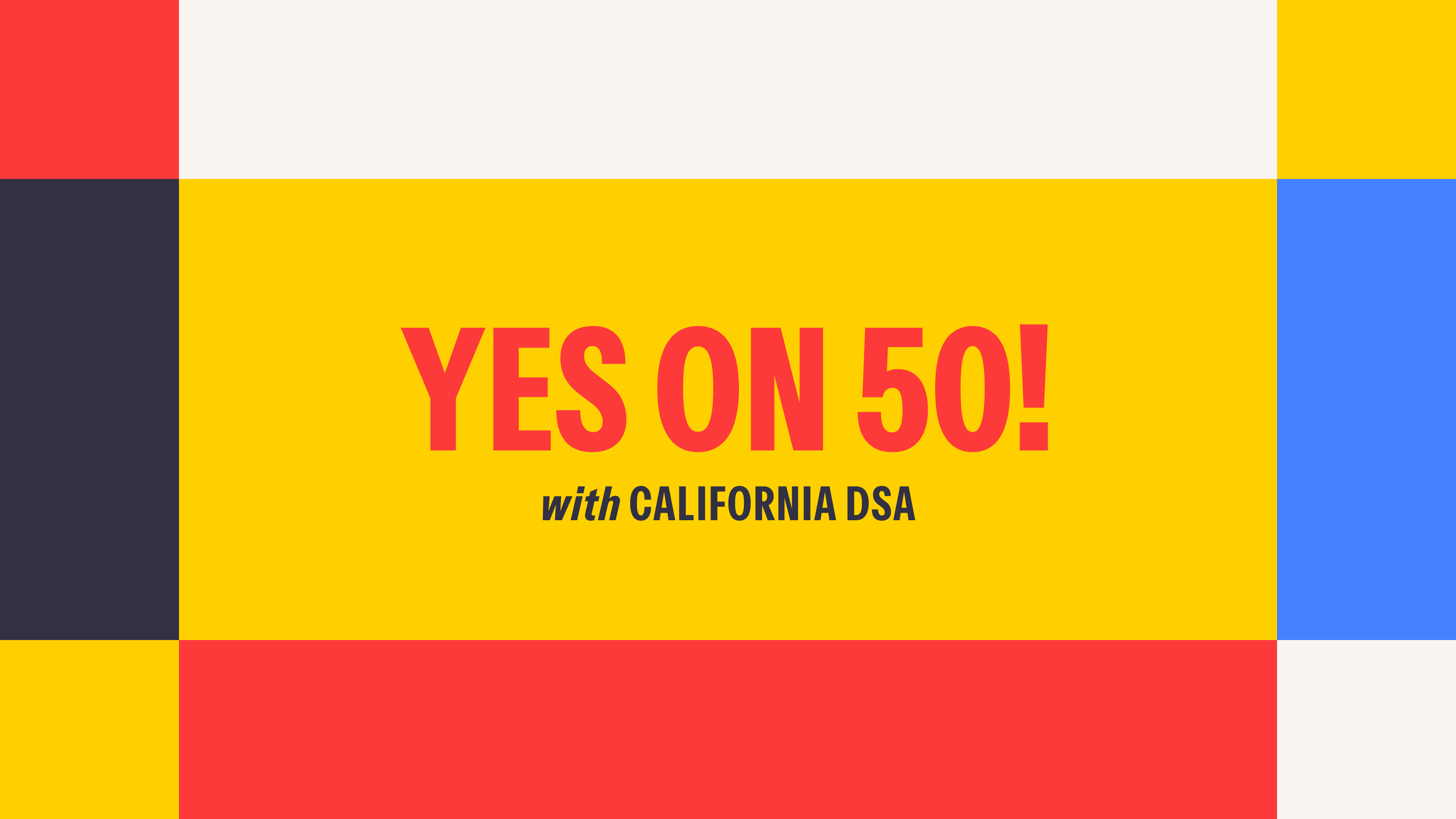 Why should socialists support Prop 50? What does this ballot measure mean for the fight against right wing authoritarianism on the federal level? What is the role that California can play in this fight? We are one of the biggest states; we have the biggest economy; and we pay more into the federal government than any other state does. Not only that, but we have one of the strongest labor movements and immigration justice movements. In this moment, can California lead in the way in the fight against fascism? What would that look like, and how does Prop 50 fit in?