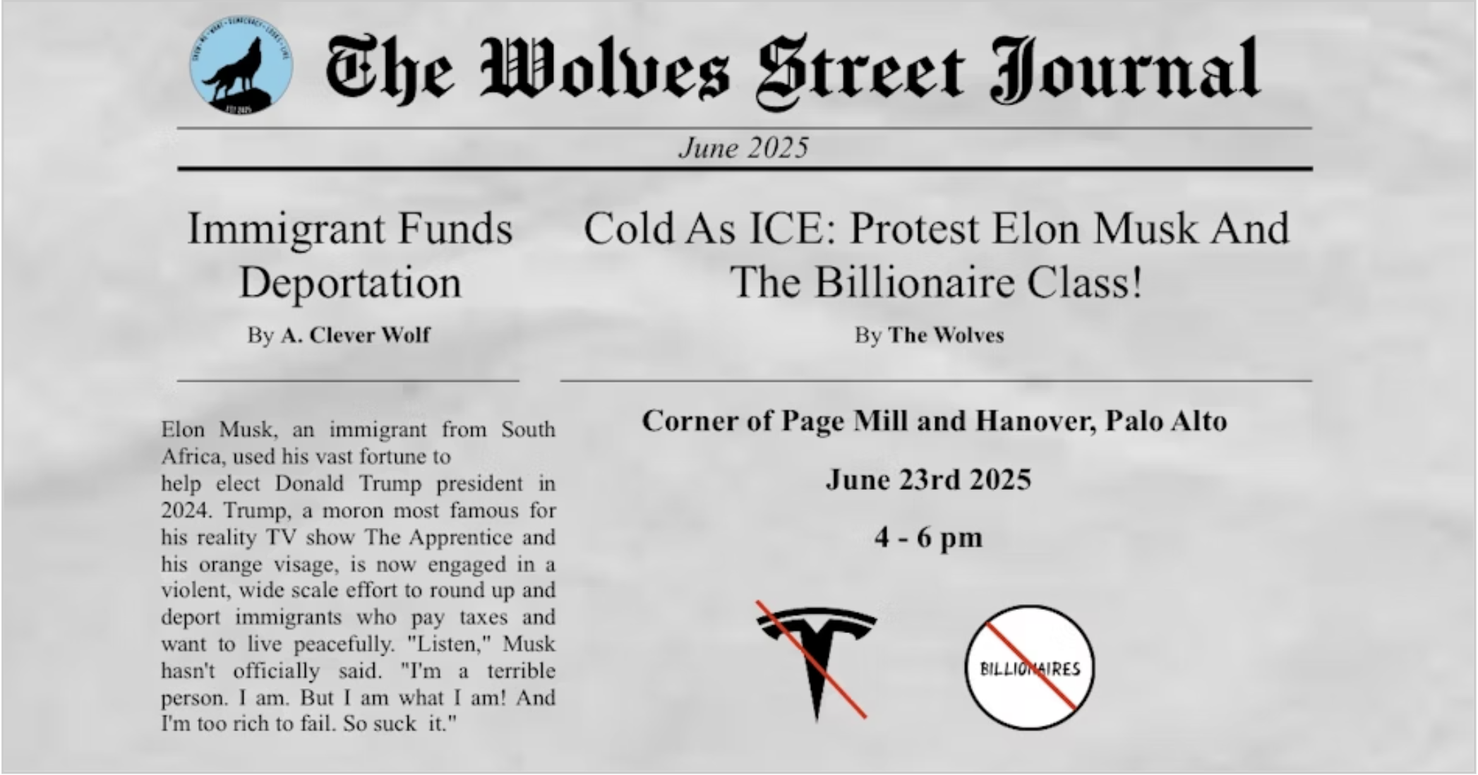 Cold As ICE: Protest Elon Musk and the Billionaire Class - Tesla HQ