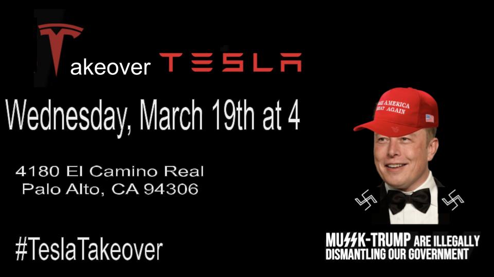 We'll see you in front of the Tesla showroom in Palo Alto on Wednesdays, as we need to keep up the pressure! For this event we'll be picketing in front of the showroom, we won't be taking disruptive violent action. Please stay on the curbside when planning to stay in one spot. Make sure not to block the Tesla driveway entrance. Cross the street when safe to do so.