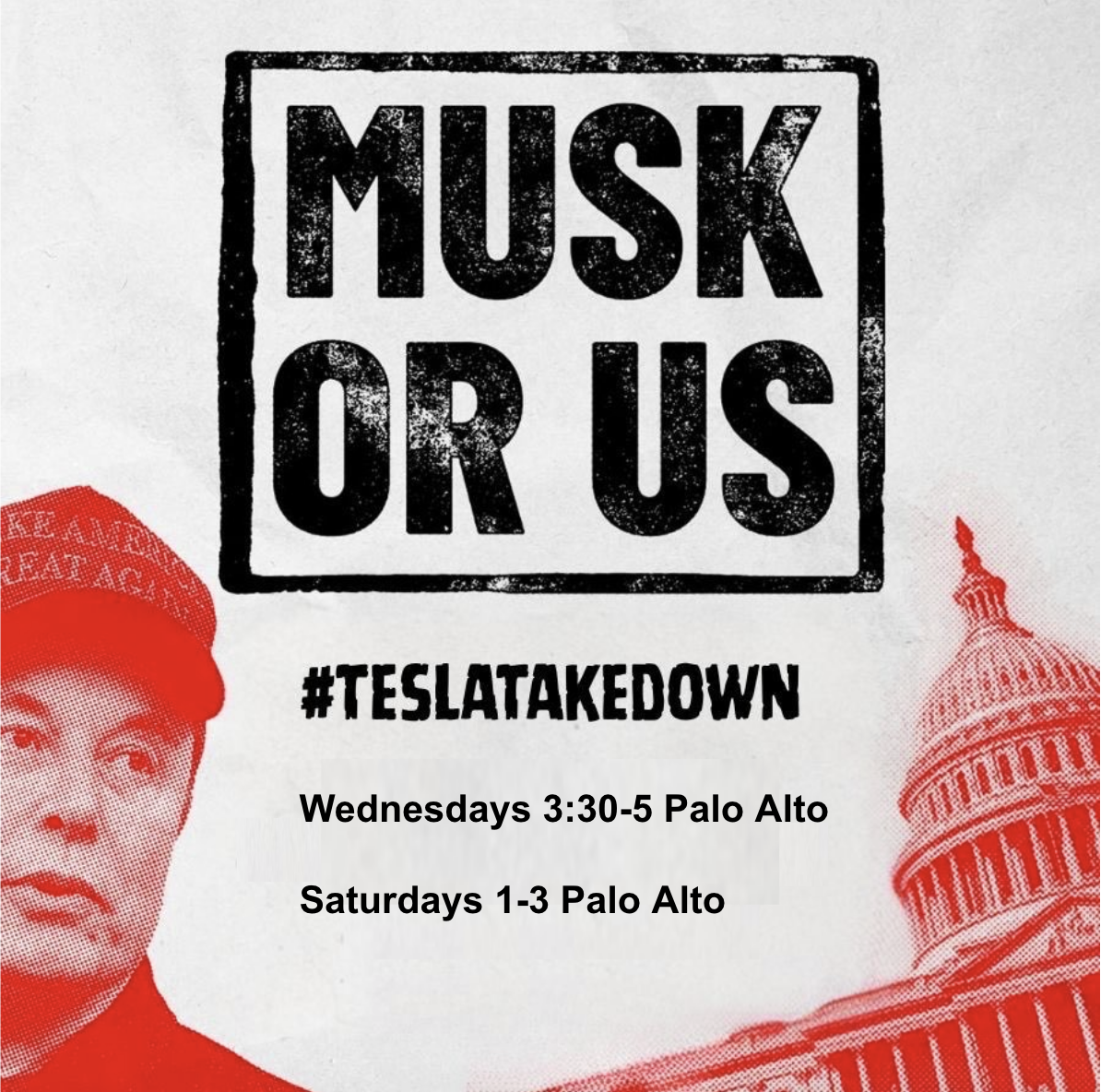 This is a peaceful, nonviolent protest. Our goal is to call attention to Musk’s corruption and to defund Musk.