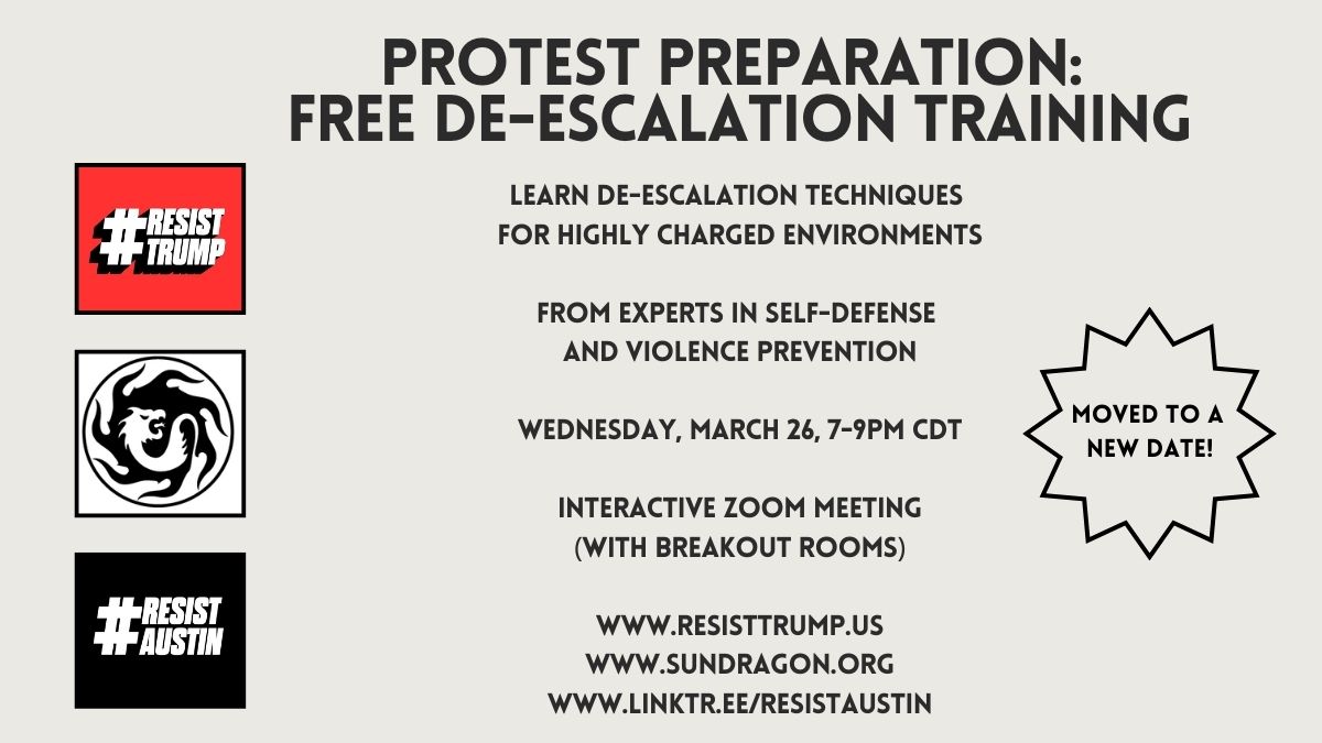 #ResistTrump Campaign, we’ll learn proven de-escalation techniques for preventing and interrupting highly charged environments in multiple scenarios. We’ll practice adrenaline management skills and communication strategies to help you stay calm and assertive to navigate conflicts with greater confidence and composure.
