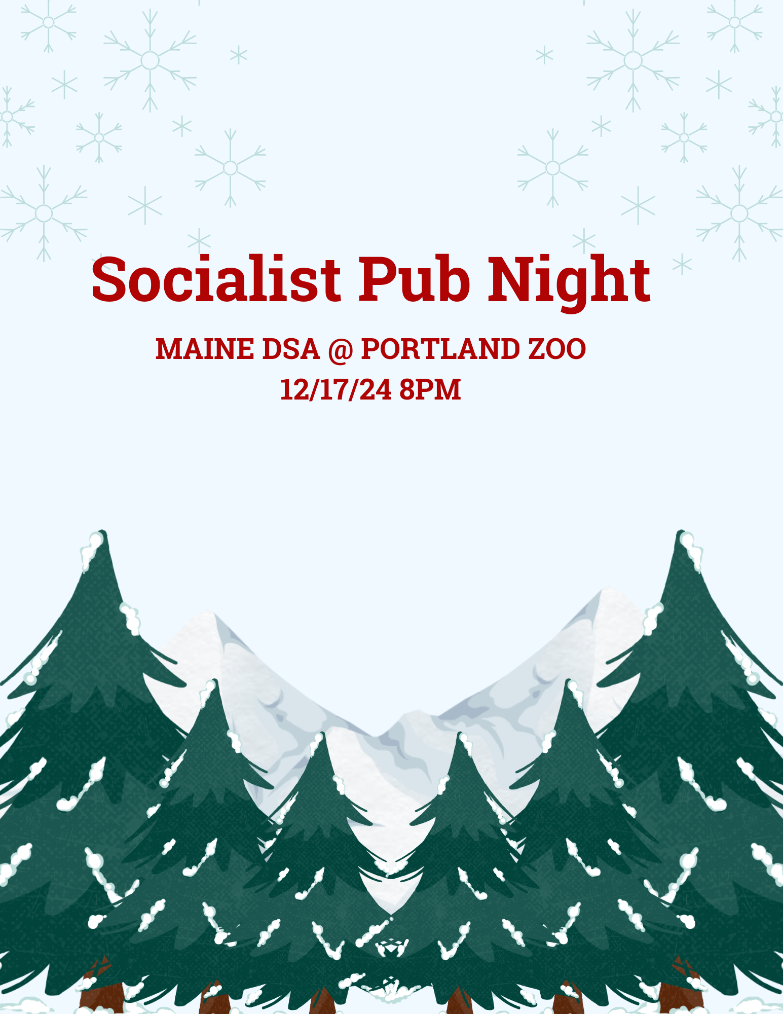 Join your fellow comrades at the bar for a no pressure hang out. This is a great event for long-time and newer member who want to learn more about what the Maine DSA is up to. Members and non-members welcome!