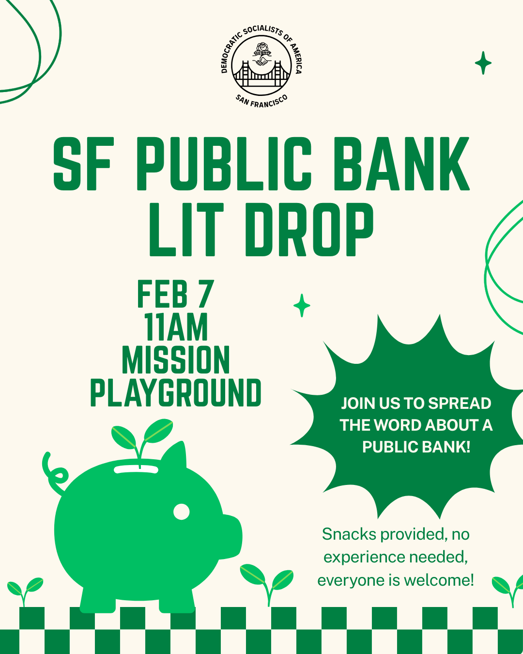 We are joining the Public Bank Coalition in spreading the word about a public bank with a lit drop! No experience needed. Snacks provided!