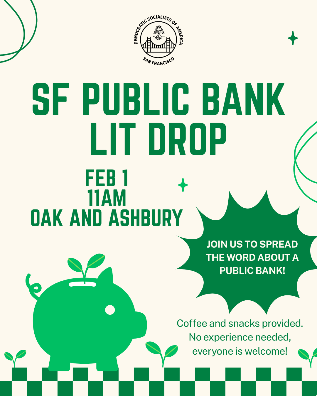 We are joining the Public Bank Coalition in spreading the word about a public bank with a lit drop! No experience needed. Coffee and snacks provided!