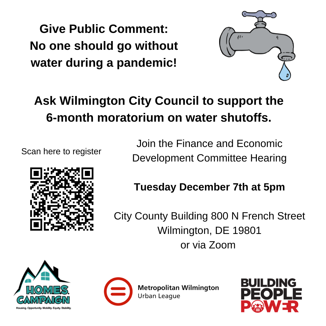 Please join H.O.M.E.S. Campaign in giving public comment to help stop the City of Wilmington from shutting off residents' water during a pandemic.