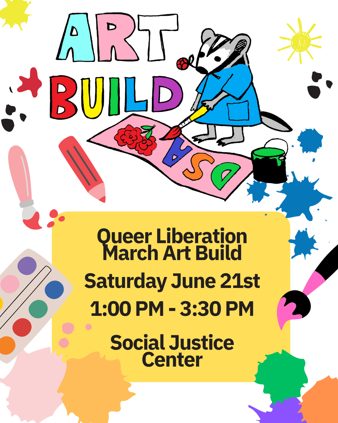 Come to the SJC to work with comrades to prepare signs banners and miscellaneous art for the Queer Liberation March!