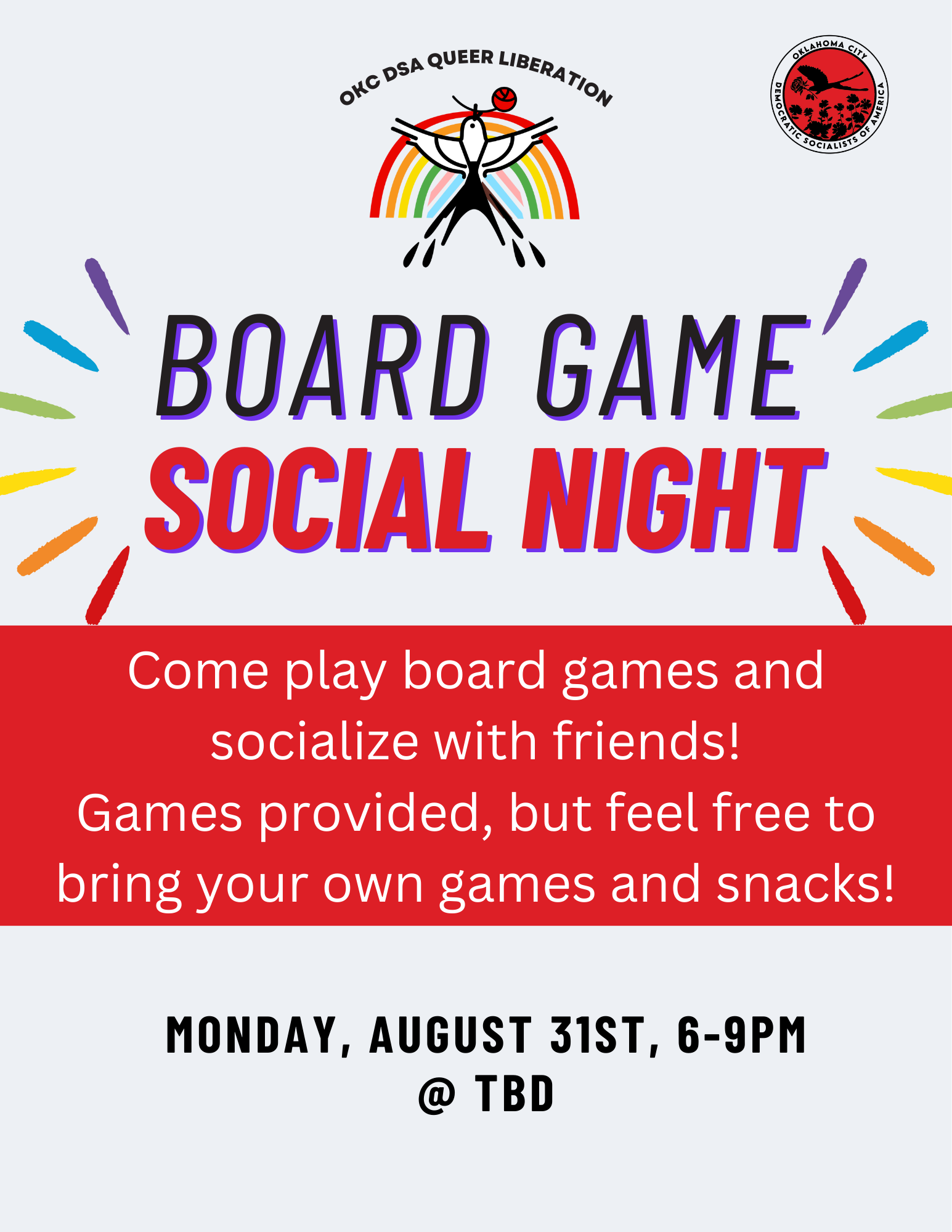 Join the OKC DSA Queer Liberation Working Group for a night of board games and socializing.