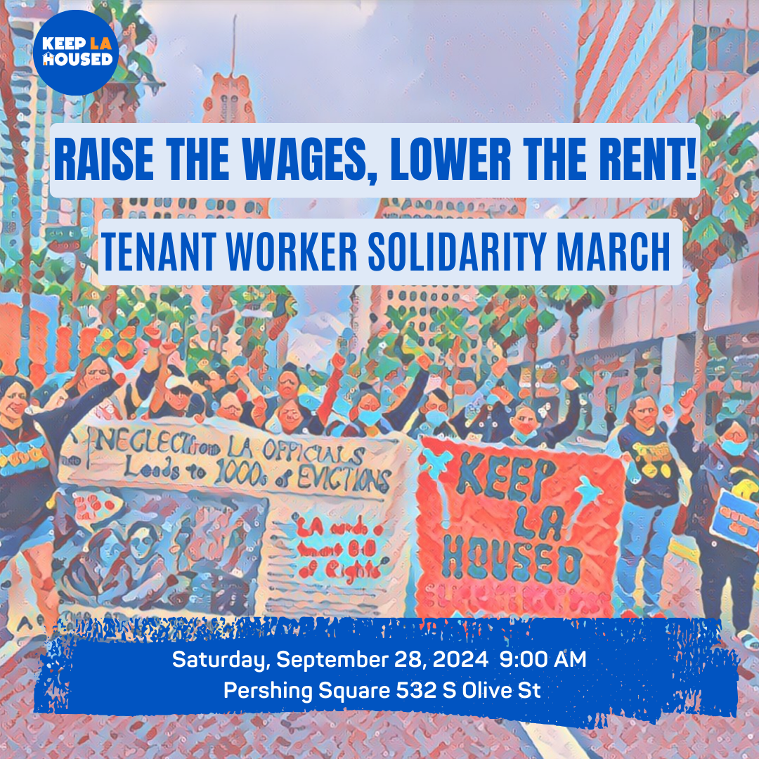 Join DSA-LA, Keep LA Housed, community organizations, and labor unions to demand higher wages, stronger rent controls, and tenant protections as we build a movement for lower rents.