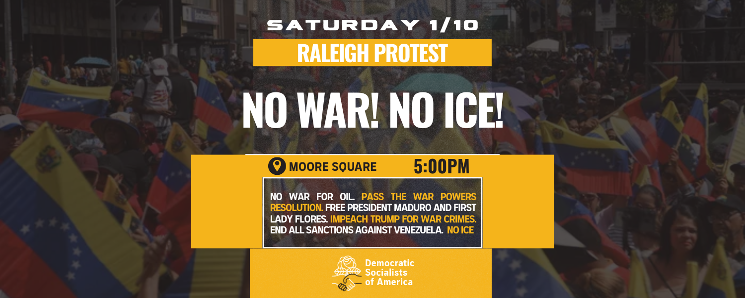 Democratic Socialists of America is calling on DSA chapters and all people of the United States to take action this Saturday, January 10th, to protest this illegal war, stand in solidarity with the sovereign people of Venezuela, and demand the abolition of ICE. Join us!