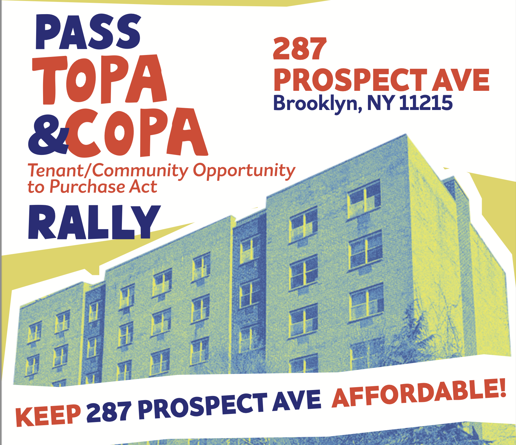 Help the tenants at 287 Prospect Ave keep their building permanently affordable! Pass the Tenant Opportunity to Purchase Act and the Community Opportunity to Purchase Act!