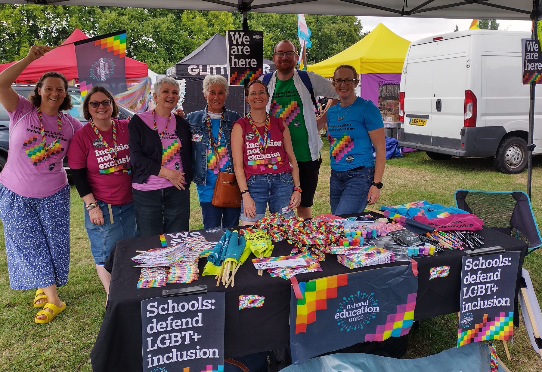 Reading NEU's community stall at the start of the academic year promotes our campaign, ‘Inclusion not Exclusion’, calling for a strong defence of LGBT+ education and support for our LGBT+ educators. Look out for us and on your way join us in the Love Unites Parade too.