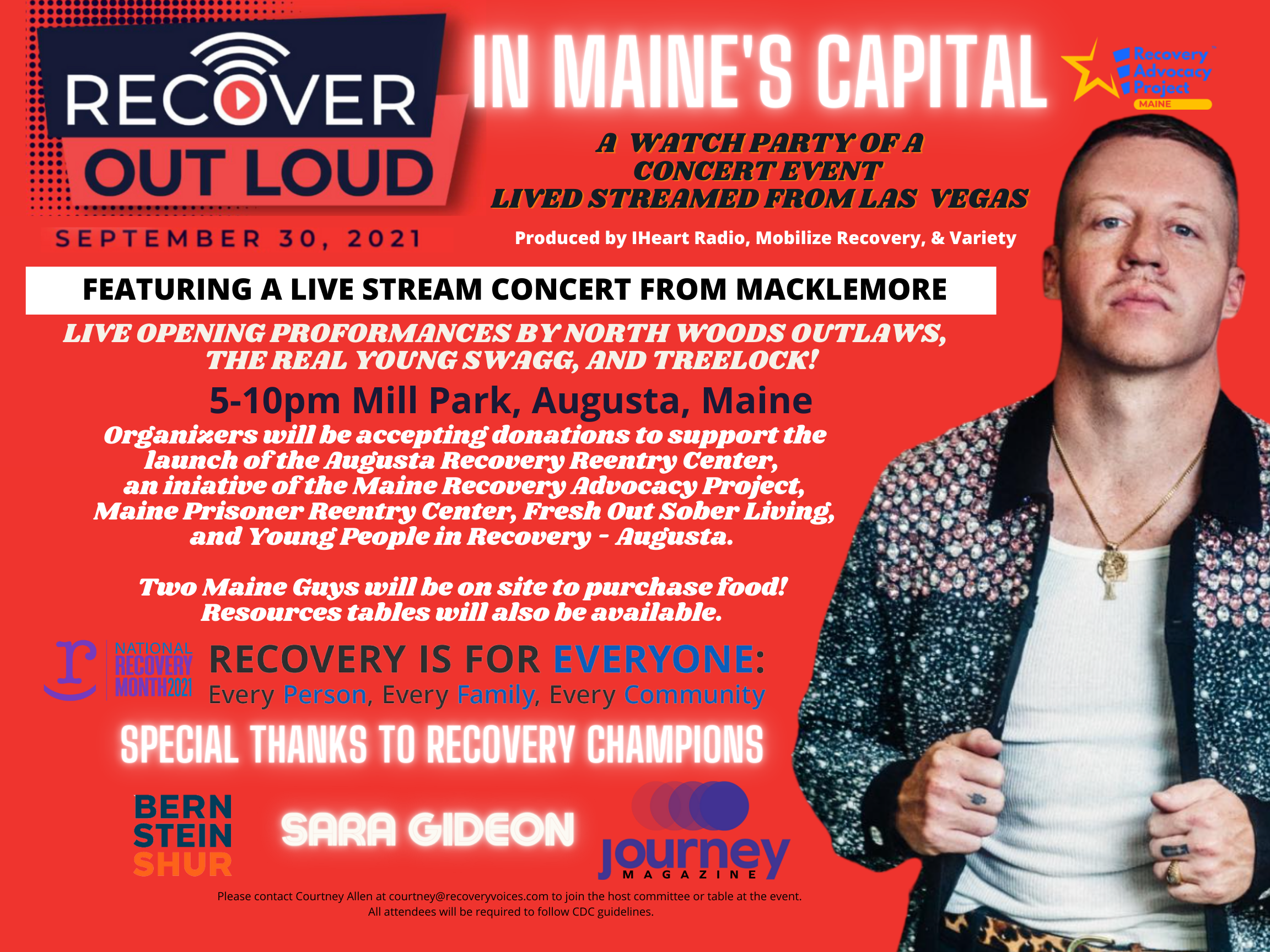 Guest speakers will include Mayor Dave Rollins, Carolyn Delany (Founder of Journey Magazine), Representative Charlotte Warren, Councilor Courtney Allen, and many of Maine's recovery community leaders.