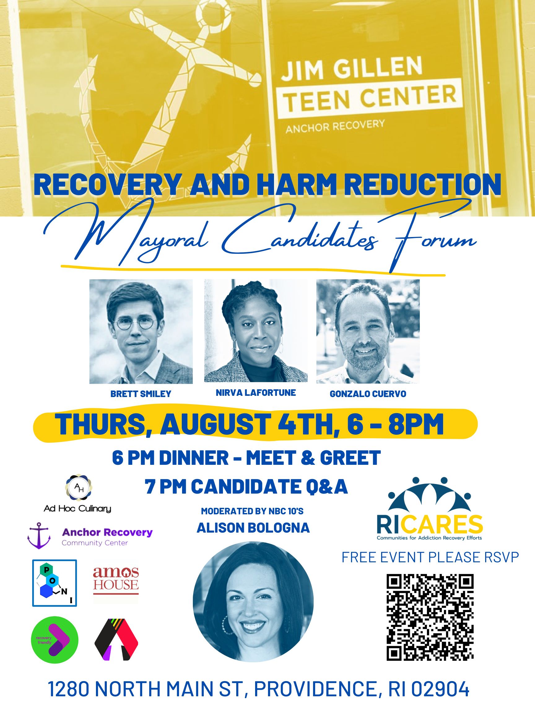 Recovery and addiction issues and solutions are at the center of this Providence Mayoral Candidate event. All candidates have been invited and three candidates are confirmed to attend.
