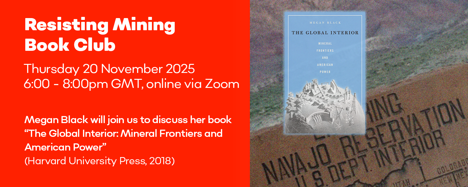 LMN is delighted to announce our sixth and final Resisting Mining Book Club of 2025 with guest speaker Megan Black, who will be speaking about her book The Global Interior: Mineral Frontiers and American Power (Harvard University Press, 2018).