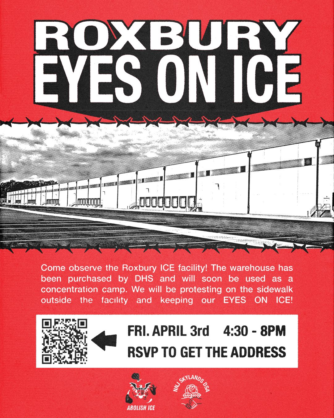 Come observe the Roxbury ICE facility! The warehouse has been purchased by DHS and will soon be used as a concentration camp for immigrants and whoever DHS has deemed persona non grata. We will be protesting on the sidewalk outside the facility and keeping our eyes on ICE! RSVP for information about parking.