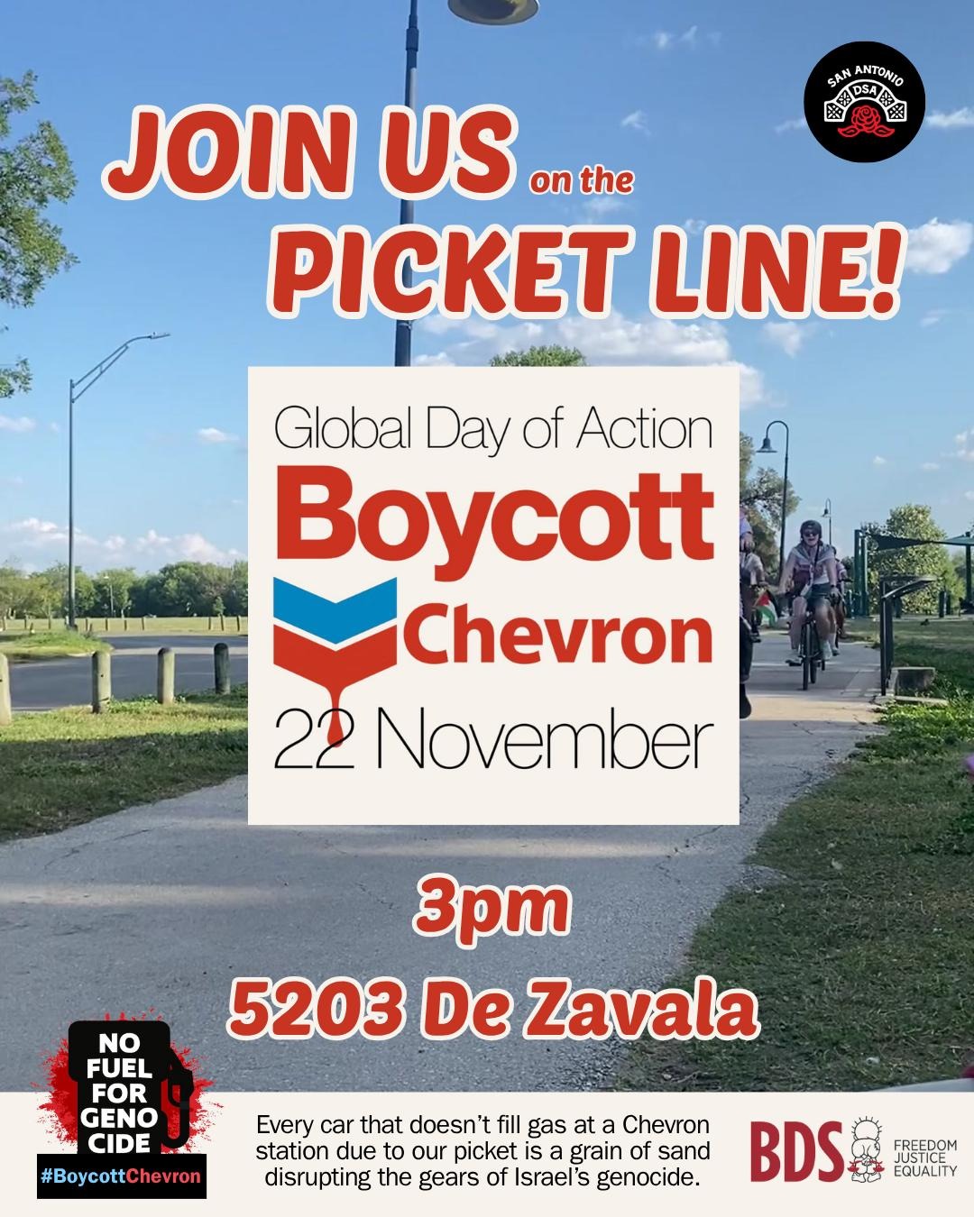 As part of the Boycott Chevron Global Day of Action, we are joining people around the world in demanding Chevron to stop fueling genocide!