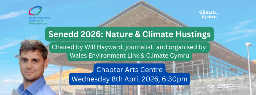 | Senedd 2026: Nature & Climate Hustings Wednesday 8th April 2026 6:30pm - 8:30pm Seligman Theatre, Chapter Arts Centre Chaired by Will Hayward, journalist, and organised by Wales Environment Link & Climate Cymru. Confirmed panelists: • Jane Dodds - Welsh Liberal Democrats • Janet Finch-Saunders - Welsh Conservatives • Huw Irranca-Davies - Welsh Labour • Delyth Jewell - Plaid Cymru • Anthony Slaughter - Wales Green Party Join our hustings audience to hear the parties’ environmental spokespeople discuss climate change and nature recovery. From farming policy to fuel poverty and from cleaner commutes to cleaner waters, we'll be holding the parties to account. We'll be drawing on the themes from WEL's manifesto and Climate Cymru's, but anything related to climate and the environment is on the table! Got a burning question? If you want to raise something with the candidates and ask for their views, please include your suggestion in the box with your RSVP on this page and if you're selected to ask it, we'll let you know in advance over the email adress you've provided. Chapter Arts Centre offers food and drink at their Cafe Bar; on this Wednesday, they will have food available until 6pm and the bar open until closing time at 10pm. The Segliman Theatre is accessible via lift for wheelchair users, and other visiting info for the Centre is available online here: https://www.chapter.org/visit | Senedd 2026: Hustyngau Natur a Hinsawdd Dydd Mercher 8fed Ebrill 2026 6:30pm - 8:30pm Theatr Seligman, Canolfan Gelfyddydau Chapter Cadeirir Will Hayward, newyddiadurwr, a threfnir gan Gyswllt Amgylchedd Cymru a Climate Cymru. Panelwyr wedi'u cadarnhau: • Jane Dodds - Democratiaid Rhyddfrydol Cymru • Janet Finch-Saunders - Ceidwadwyr Cymru • Huw Irranca-Davies - Llafur Cymru • Delyth Jewell - Plaid Cymru • Anthony Slaughter - Plaid Werdd Cymru Ymunwch â'n cynulleidfa hustyngau i glywed llefarwyr amgylcheddol y pleidiau gwleidyddol yn trafod newid hinsawdd ac adferiad natur. O bolisi ffermio i dlodi tanwydd ac o gymudo glanach i ddyfroedd glanach, byddwn yn dwyn y pleidiau i gyfrif. Byddwn yn tynnu ar themâu maniffesto Cyswllt Amgylchedd Cymru a Climate Cymru, ond mae unrhyw beth sy'n gysylltiedig â hinsawdd a'r amgylchedd ar y bwrdd! Oes gennych chi gwestiwn llosg? Os ydych chi eisiau codi rhywbeth gyda'r ymgeiswyr a gofyn am eu barn, cofiwch gynnwys eich awgrym yn y blwch gyda'ch ateb ar y dudalen hon ac os cewch eich dewis i'w ofyn, byddwn yn rhoi gwybod i chi ymlaen llaw drwy'r cyfeiriad e-bost rydych chi wedi'i ddarparu. Mae Canolfan Gelfyddydau Chapter yn cynnig bwyd a diod yn eu Bar Gaffi; ar y dydd Mercher hwn, bydd bwyd ar gael tan 6pm a'r bar ar agor tan amser cau am 10pm. Mae Theatr Segliman yn hygyrch trwy lifft i ddefnyddwyr cadeiriau olwyn, ac mae gwybodaeth ymweld arall ar gyfer y Ganolfan ar gael ar-lein yma: https://www.chapter.org/visit |