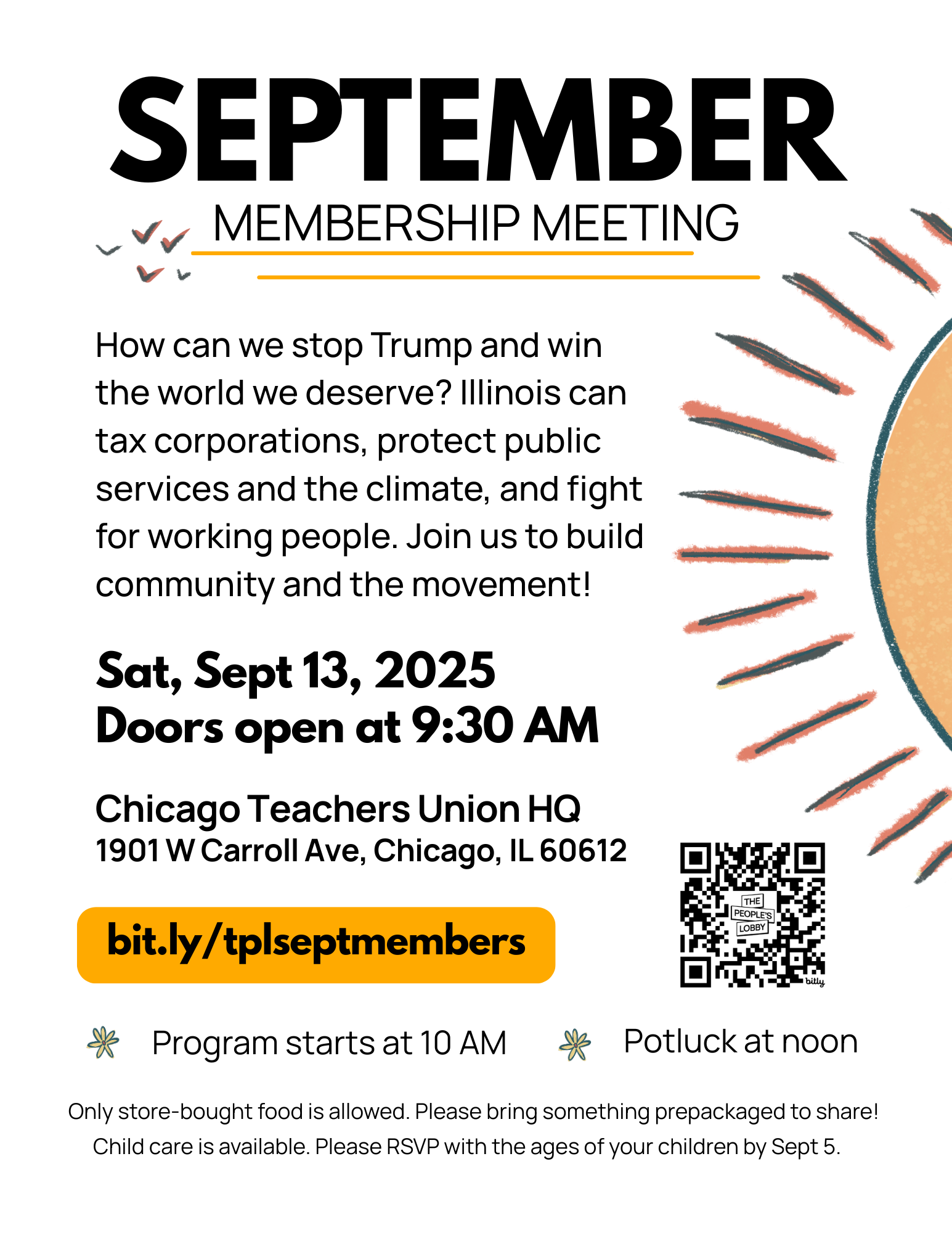 Childcare will be provided, but to be guaranteed a spot, you must RSVP with the ages of your children by Friday, Sept 5. Accessibility, parking, and transportation information will be provided soon.