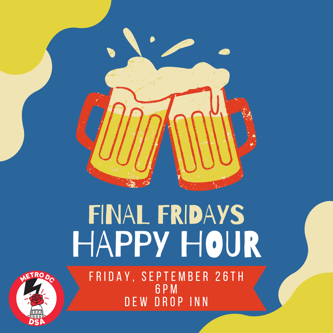 Welcome to Final Fridays with Metro DC DSA! Join us for our monthly chapter-wide happy hour at Dew Drop Inn on Friday, September 26th at 6:00 PM.