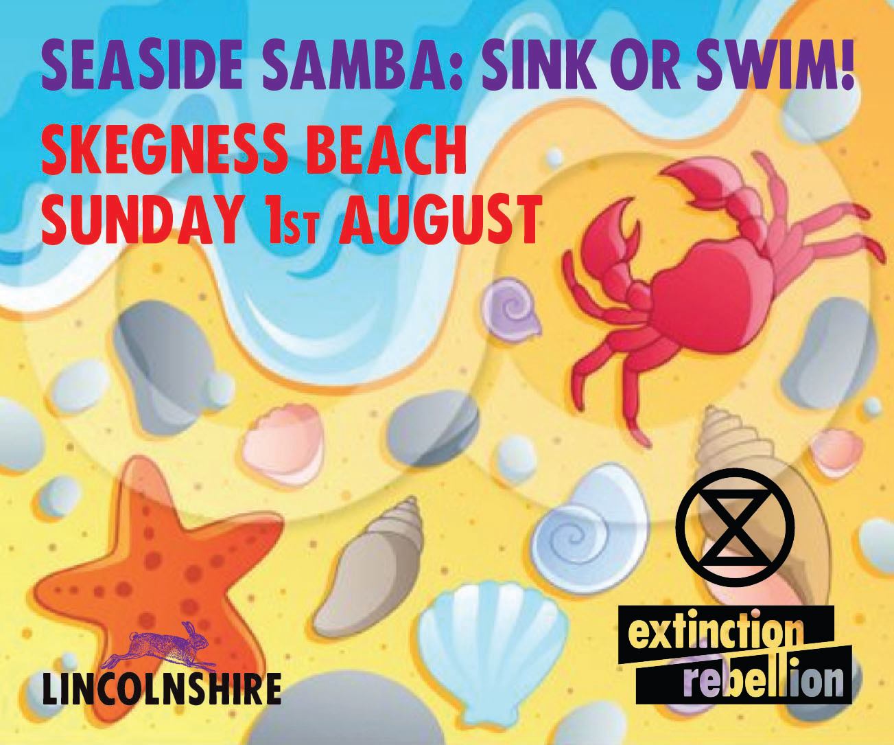 Join XR Lincolnshire for a fun day of Samba and Outreach on the coast at Skegness. We have lots of the wonderful props from our 'March for Wildlife', so it will be colourful and noisy and a great warm to warm up for our August Rebellion in London. This is a family friendly event so bring the family, dress up as your favourite animal and meet at the Clock Tower at 11.30.