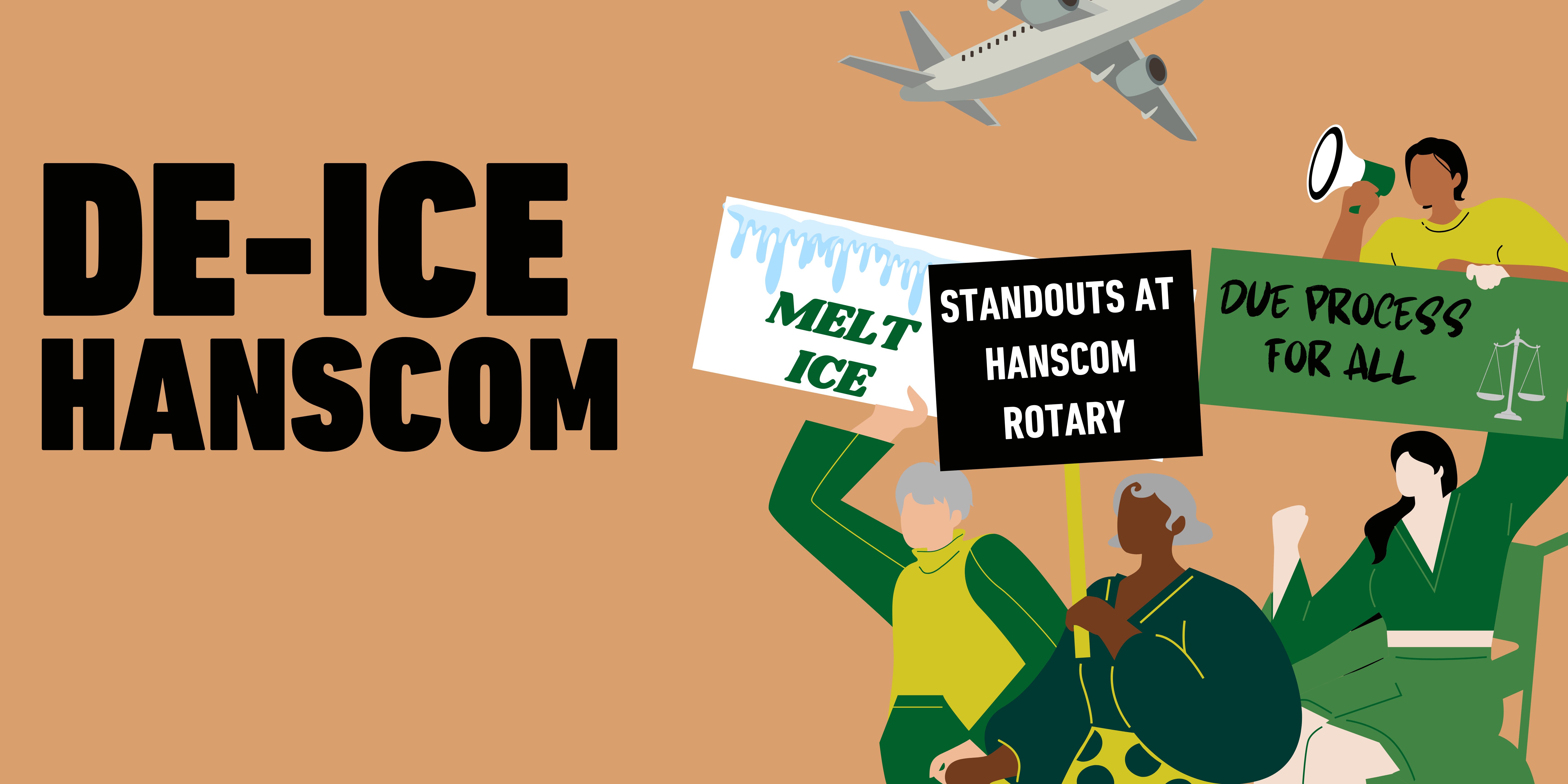 In the spirit of the May Day’s “No Work, No School, No Spending,” De-ICE Hanscom invites you to a Potluck Picnic before the standout on Friday, May 1, from 12:30–1:30. Bring something you already have to share, along with a blanket or chair—and a friend. We’ll provide drinks and paper goods. With a little planning, there’s no need to buy anything that day. This is a rain-or-shine event (we’ll have canopies if needed). The standout will follow from 1:30–3:00.