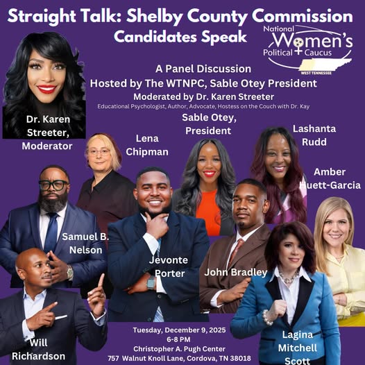 The West Tennessee Women’s Political Caucus is pleased to present a Panel of County Commission Candidates who have promised to bring a fresh perspective to our communities.