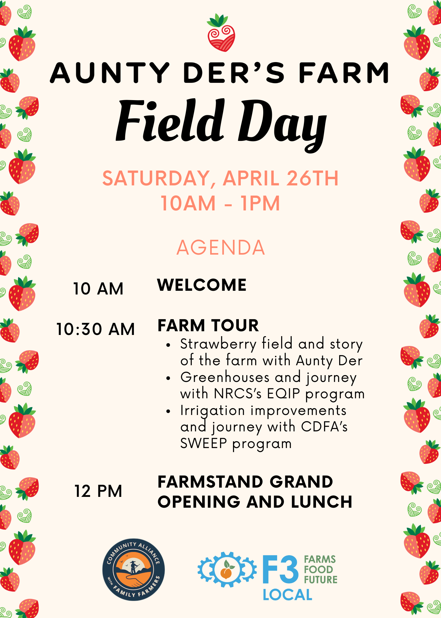 We are thrilled to invite you to a field day at Aunty Der’s Farm and celebrate the grand opening of her strawberry farmstand!