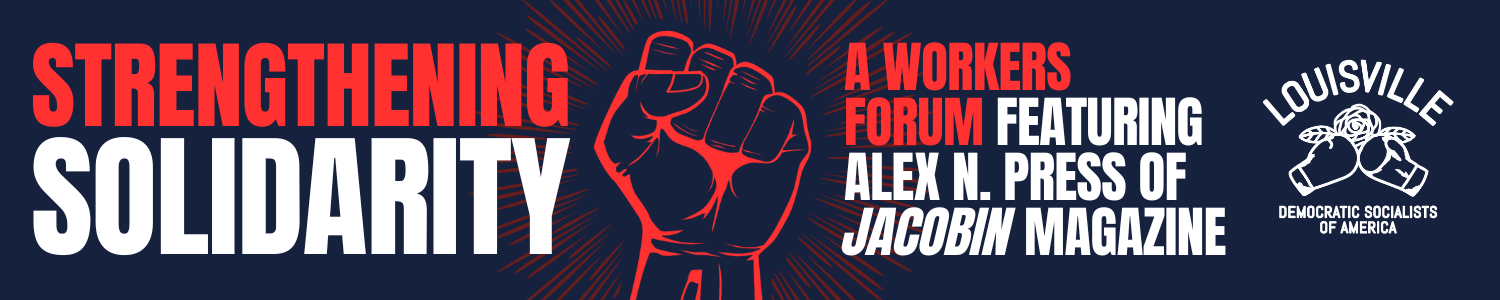 Join us on Sunday, January 26 at 7pm (IBEW Union Hall, 4315 Preston Hwy, Louisville) for a special labor event, Strengthening Solidarity. This workers forum will feature Alex N. Press, labor writer for Jacobin Magazine whose work has appeared in The Washington Post, The Nation, and Bookforum, among other places. She'll be joined by a panel of local labor leaders and workplace activists to share lessons we can take from union contract fights and organizing efforts in the past year, followed by general discussion. Additional speakers* include: