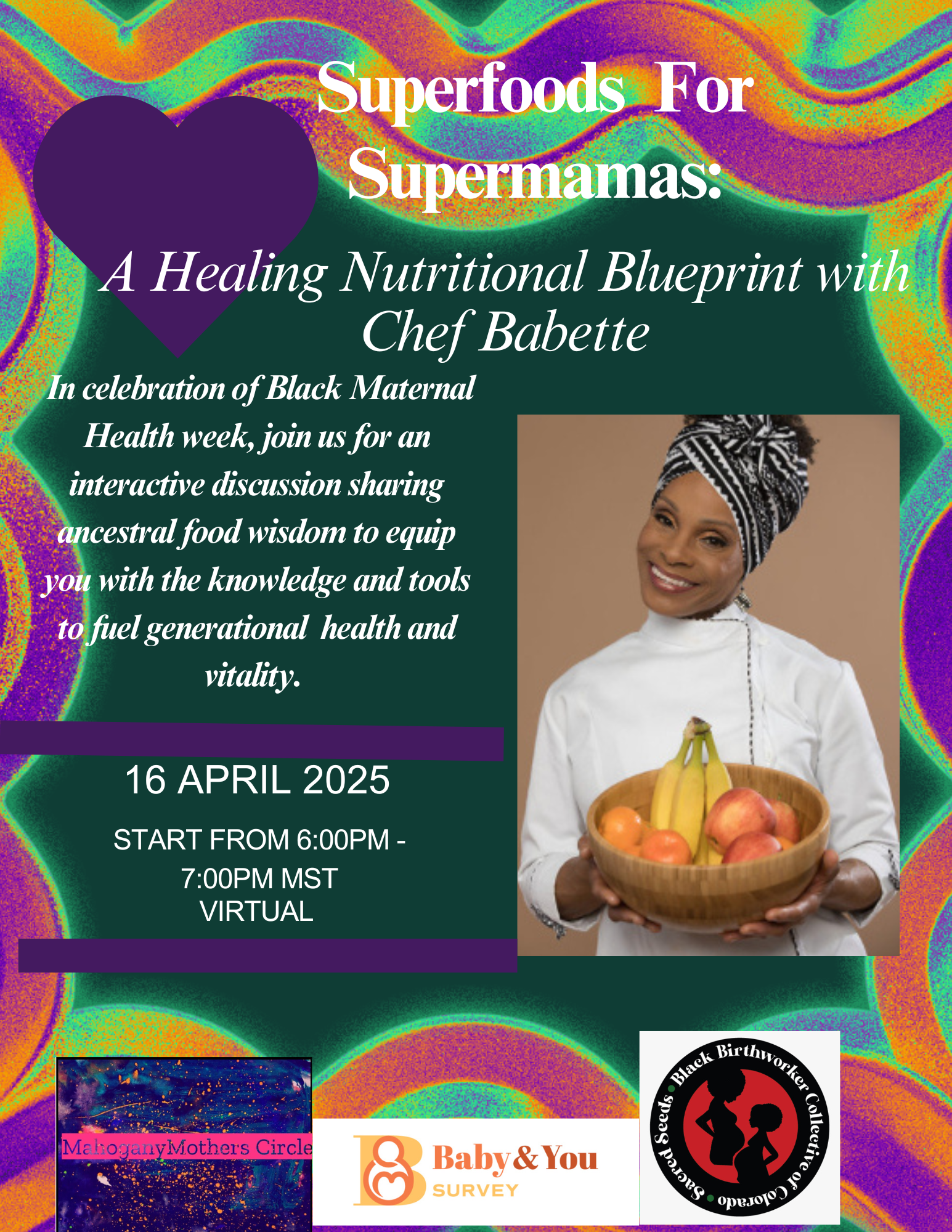Join us for a powerful conversation with renowned plant-based chef and wellness advocate Chef Babette as we honor and explore the sacred cycle of Black womanhood through the lens of nutritional wisdom. This virtual discussion celebrates the journey of Black women from girlhood to motherhood and beyond, recognizing how proper nutrition sustains and empowers each stage of this cycle.