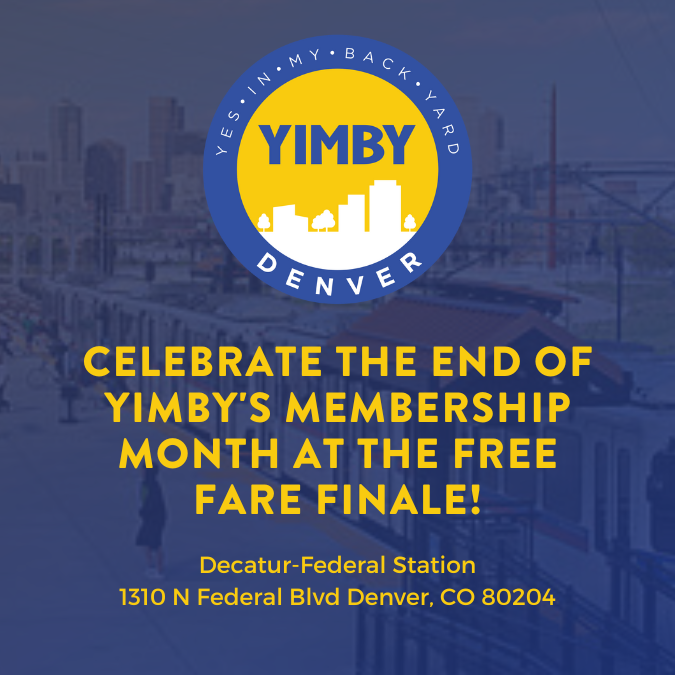 YIMBY Denver will be tabling at the Denver Street Partnership's Free Fare Finale! Come join us for great food, music, people, and activities! New YIMBY Denver members or existing members who refer a new one get a Level Up T-Shirt!