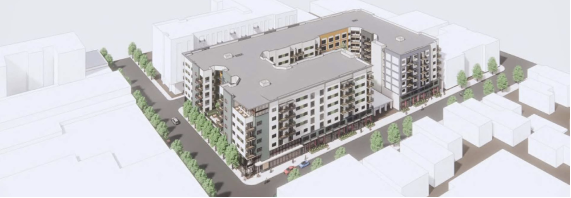 IGH Partners have proposed a new mixed-use residential apartment building featuring 299 units and 185 parking spaces, with additional resident parking located one block away in Parking Garage 3, is proposed for construction between Humboldt Street and Riley Street on the north side of 5th Street in downtown Santa Rosa. The seven-story podium structure will include a residential leasing lobby at the corner of 5th and Humboldt streets, along with a retail space at the corner of 5th and Riley streets. Read more at https://www.srcity.org/3530/425-Humboldt-Street