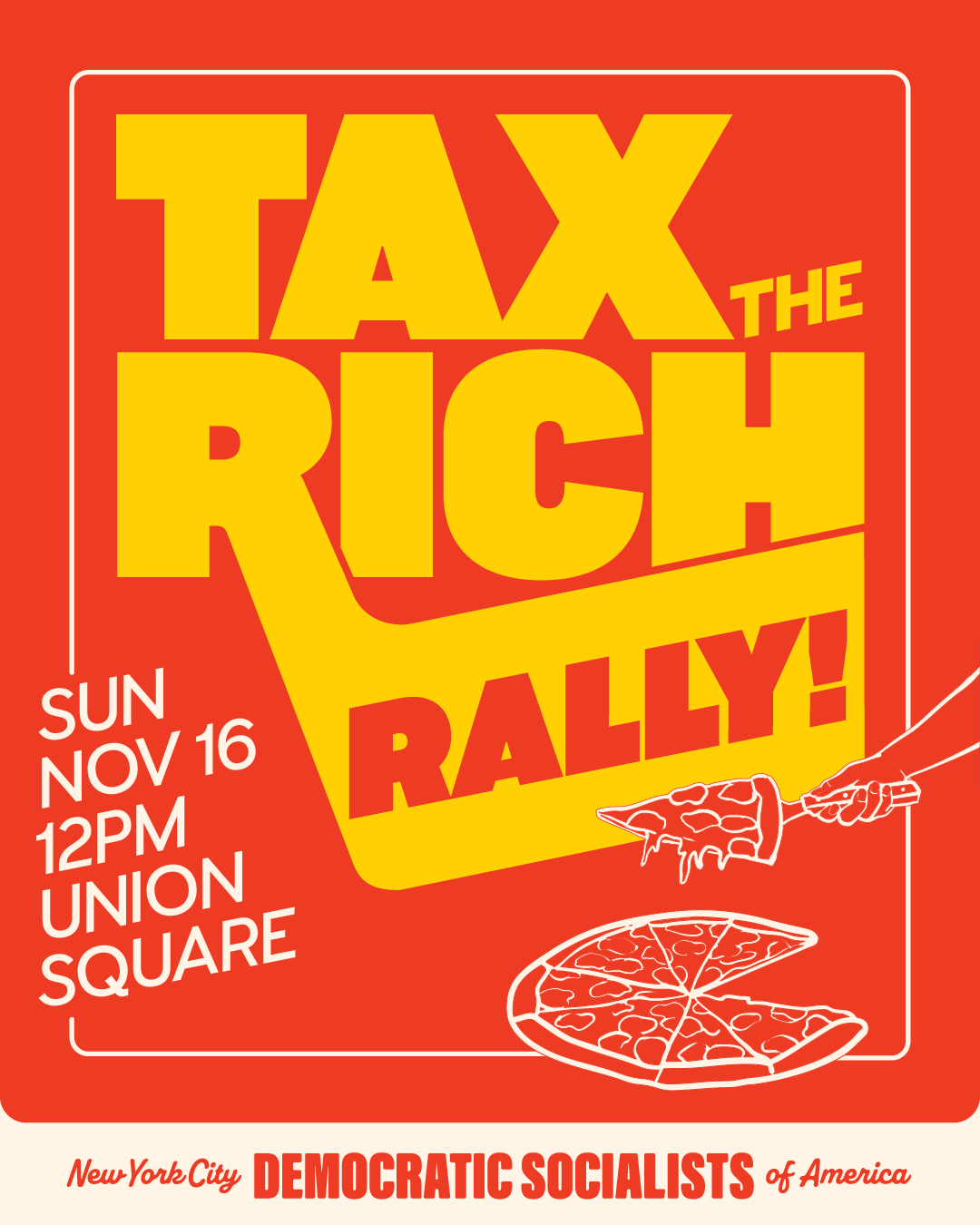 Join NYC-DSA and allies on Sunday, November 16 at 12pm to rally and launch the campaign for the next stage of winning transformational changes in this city: We demand taxes on the rich to pay for universal child care and protect New Yorkers from Trump’s budget cuts!