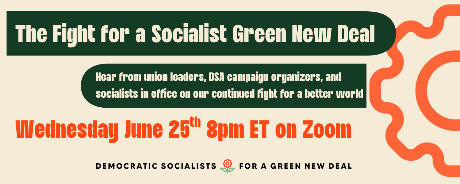 Join us to hear from union leaders, DSA campaign organizers, and socialists in office who are continuing the fight for a better future. Given the hostile federal terrain we now face, local pressure campaigns in our communities and bargaining for the common good in our union contracts are the most viable pathways for winning a socialist Green New Deal this decade.