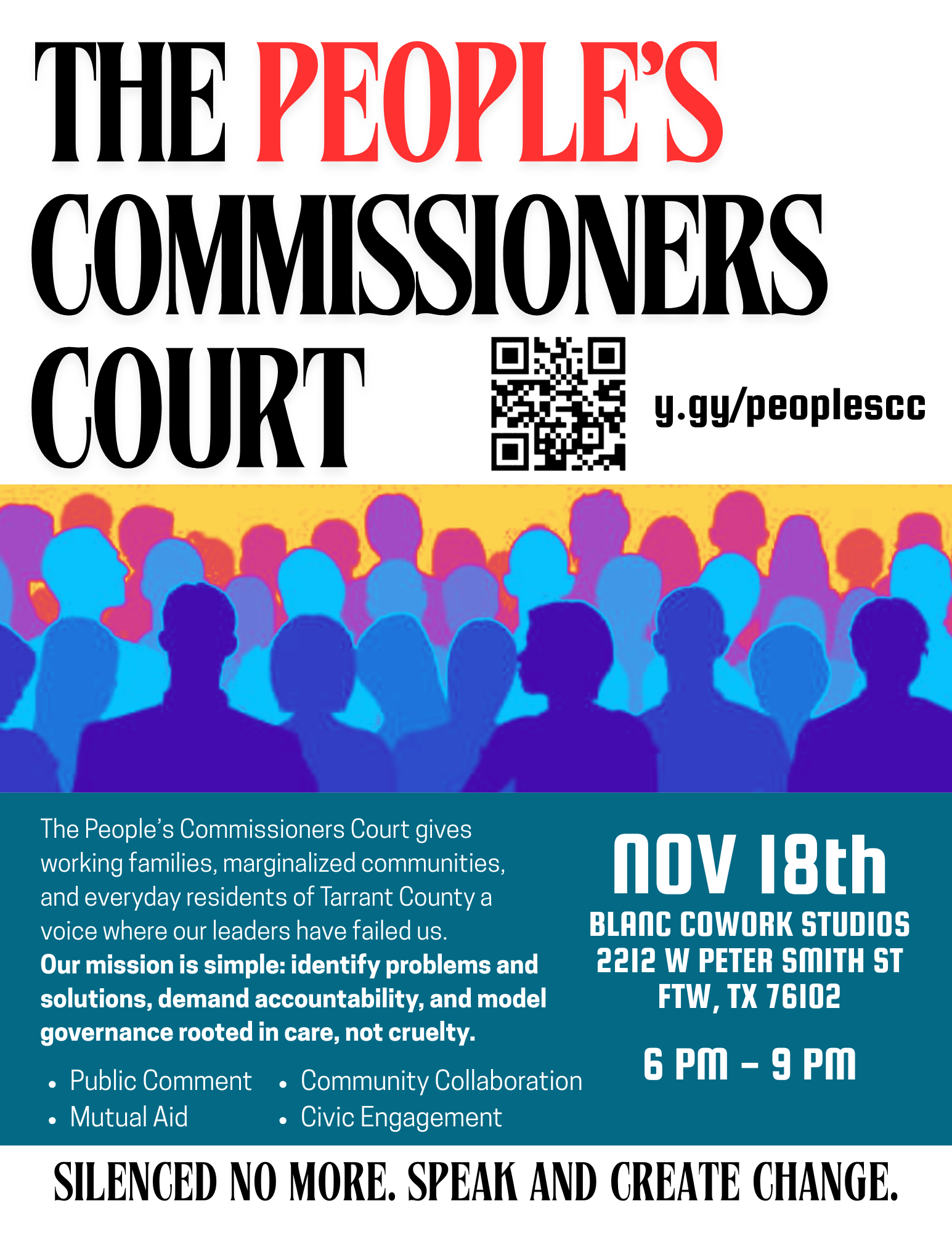 The People’s Commissioners Court gives working families, marginalized communities, and everyday residents of Tarrant County a voice where our leaders have failed us.