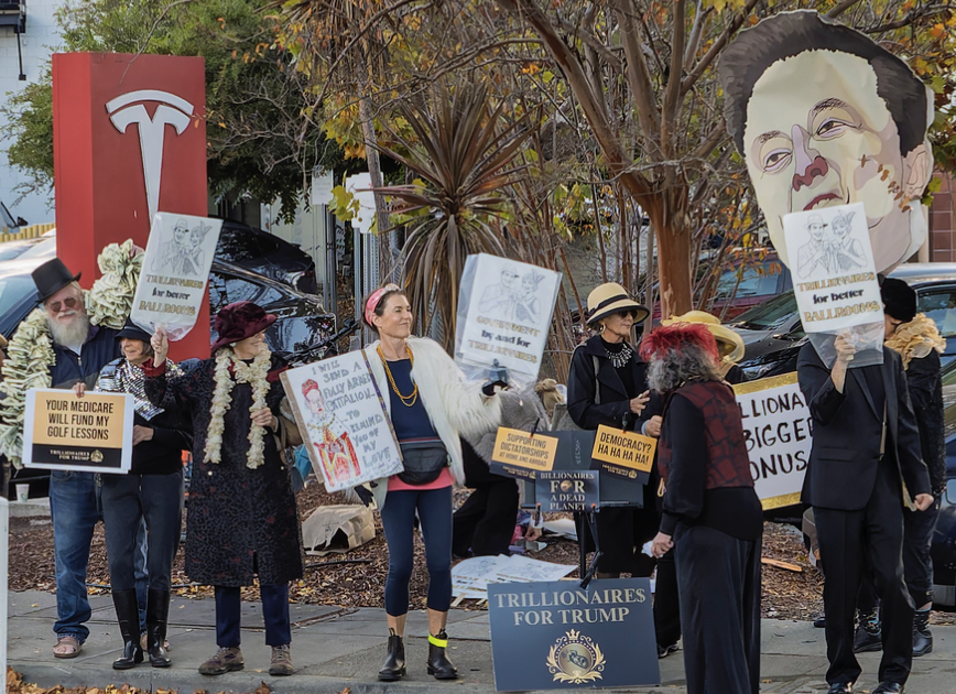 Photos of a previous billionaire/trillionaire action at a second Tesla location in Palo Alto below. Please credit the photographer Jack Owicki, ProBonoPhoto